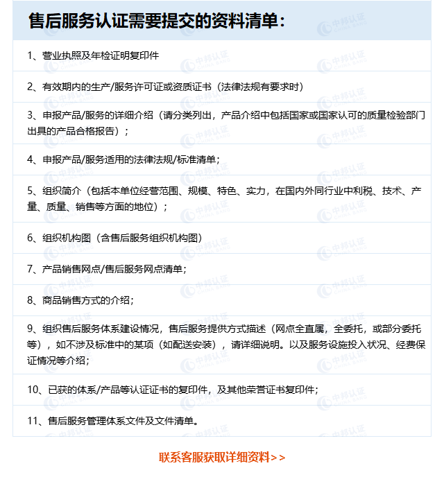 商品售后服务认证所需资料: