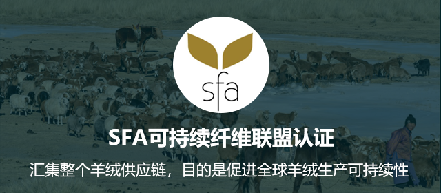 可持续纤维联盟(SFA)是一个非盈利性国际组织,在羊绒供应链中合作对象广泛—从牧民到零售商。SFA的可持续羊绒标准由三个自愿标准和一系列客户计划组成,共同实现SFA的目标,以改善羊绒生产中的社会和环境表现。降低所有羊绒生产方式对环境的影响,牧民的生计得到保障,并达到高福利标准。以促进羊绒的全球可持续性标准为准则,保护草原,修复草原,为动物福利和牧民生计保驾护航。我们的使命是通过推广SFA羊绒标准,倡导整个供应链的生产实践中敬业负责,使羊绒行业得以长久稳定地发展。