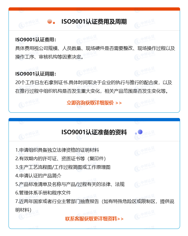 ISO9001认证费用、周期、所需资料