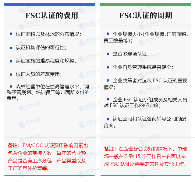 FSC认证的费用以及周期: