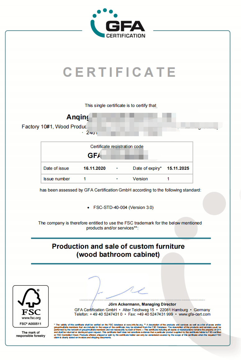 备注:FSC证书有效期为5年,到期后要重新认证,复审每1年1次,如不合格将吊销颁发的证书。