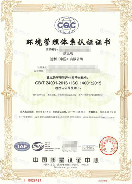 • ISO14001认证