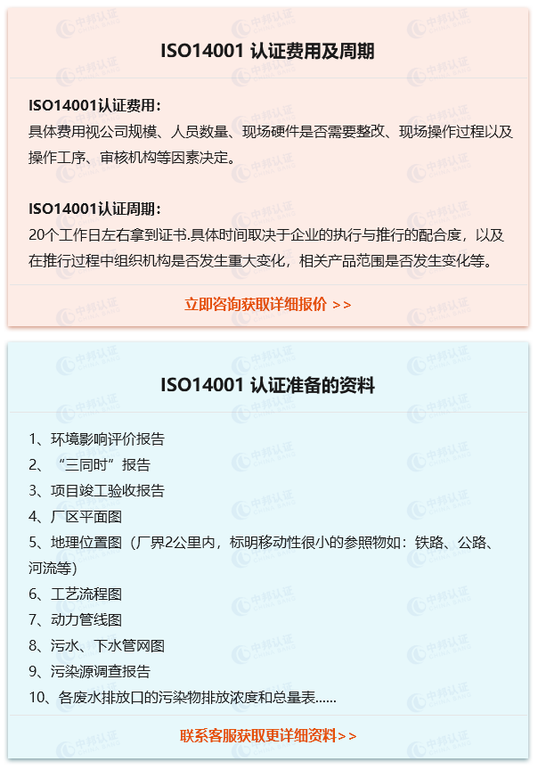 ISO14001认证费用、周期、所需资料